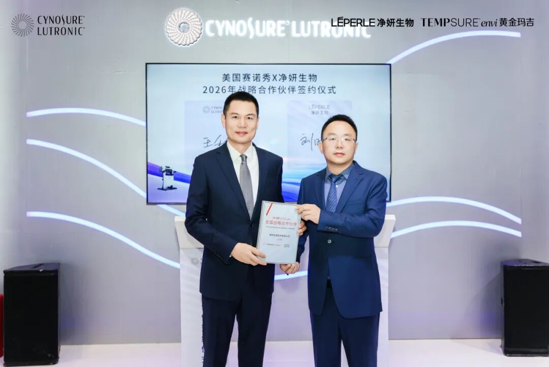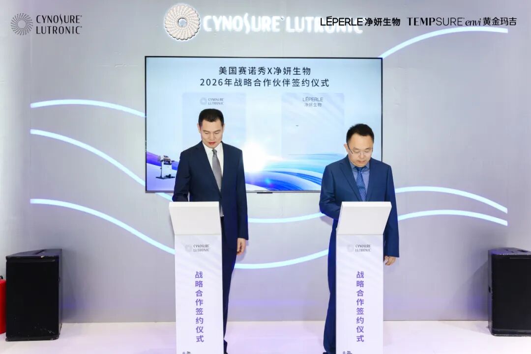 2025年11月7日,在第二十屆中國醫(yī)師協(xié)會皮膚科醫(yī)師年會暨全國美容皮膚科學(xué)大會(CDA2025)上,凈妍生物與全球領(lǐng)先的醫(yī)療美容激光設(shè)備制造商—美國賽諾秀(Cynosure)正式簽署全國戰(zhàn)略合作協(xié)議。雙方就Tempsure黃金瑪吉達(dá)成深度合作,凈妍生物正式成為賽諾秀中國官方戰(zhàn)略合作伙伴,全面開啟“無創(chuàng)舒適熱瑪吉”抗衰新紀(jì)元!